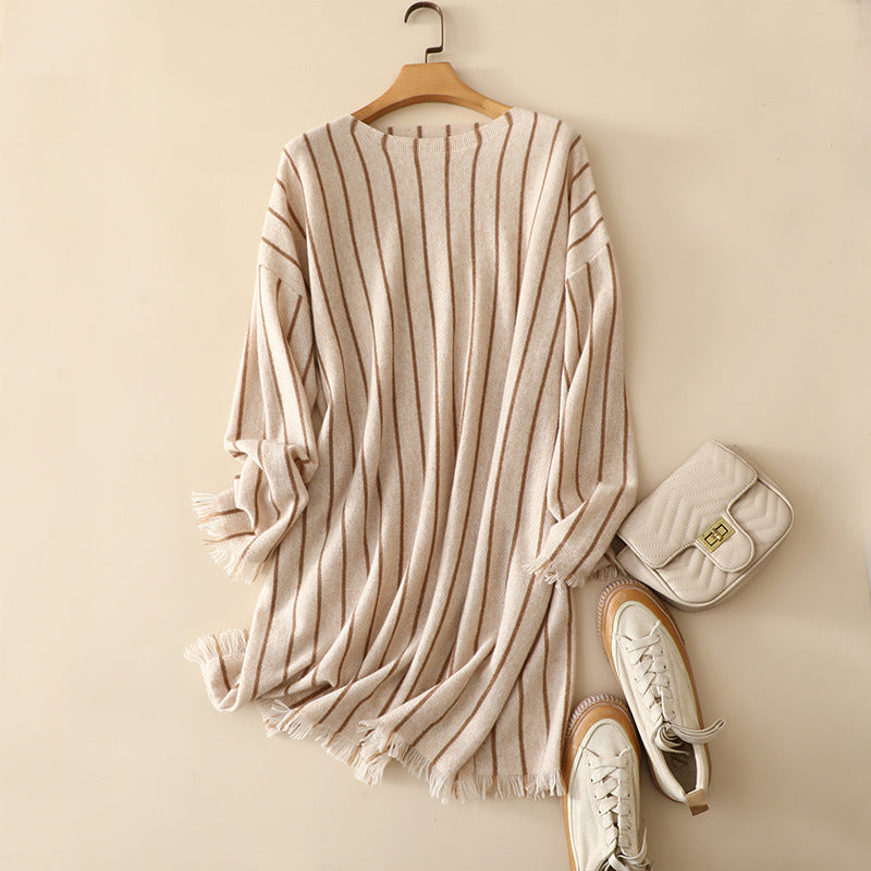 Subtle as a whispered refrain, the Aria Cardigan moves with grace. Its stripes provide a rhythmic elegance, while the soft, airy knit floats lightly over the body, creating a sensation of effortless freedom. The open construction enhances breathability and movement, making each wear feel fluid and weightless. Perfectly suited for layering or as a statement alone, it transforms ordinary moments into refined, intimate experiences.